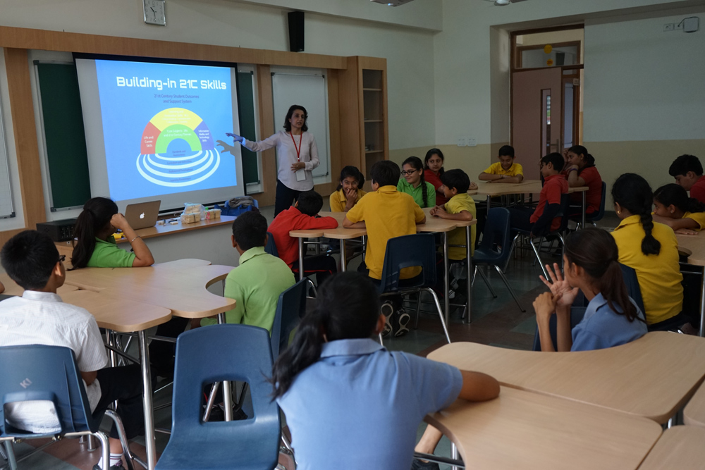 The campus is equipped with modern facilities that are stimulating and supportive of the Teaching-Learning Processes pursued to realize our philosophy. Our campus is set in calm & pollution-free surroundings. The campus houses classes from Nursery to Standard XII. Spacious and airy classrooms, assigned to different levels, are separated houses. All the classes are technologically equipped to implement the Smart Class Programme. The audio-visual room and virtual classroom facility aids to provide a more meaningful and active learning experience.